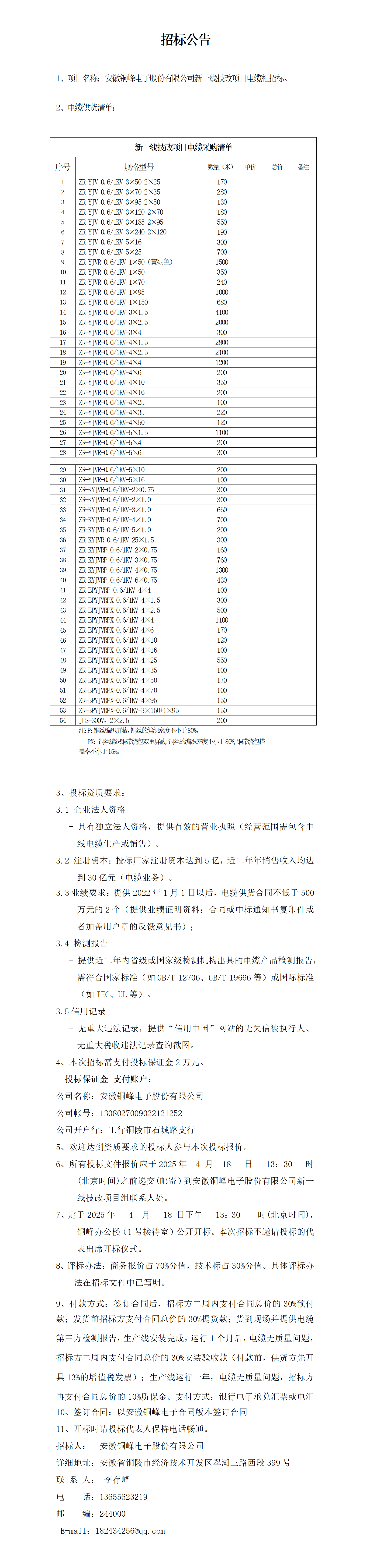 安徽銅峰電子股份有限公司新一線項(xiàng)目電纜招標(biāo)公告_01