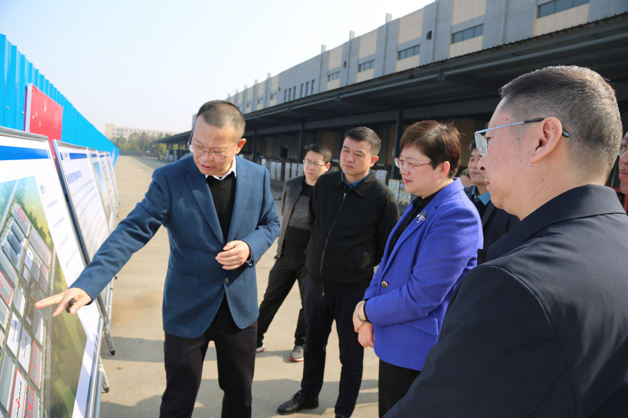 在公司重點項目建設(shè)現(xiàn)場,昌紅梅認(rèn)真聽取黃明強關(guān)于企業(yè)經(jīng)營和項目建設(shè)等情況的匯報,詳細觀看公司2021年以來謀劃實施的六個重點項目介紹展板。